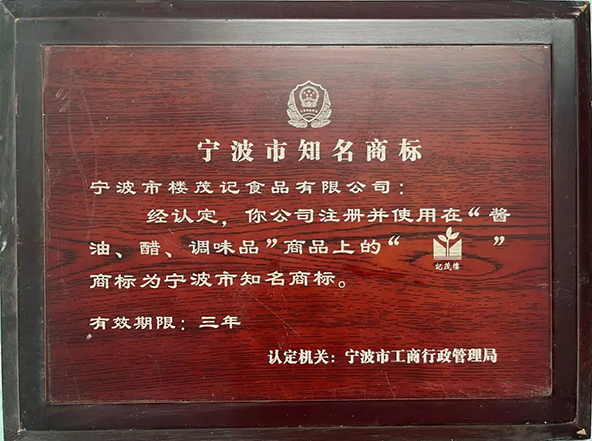 1999年2月,楼茂记系列产品袋装、瓶装酱油、香醋,盒装豆瓣酱、甜面酱,真空包装五香豆腐干在全市各大批发市场、商场、超市隆重推出,受到广大消费者的好评;3月,楼茂记酱油、香醋列为宁波市产品质量监督检验所质量跟踪产品;5月,楼茂记系列产品被评定为宁波市消费者协会推荐产品;8月,楼茂记食品有限公司被宁波市旅游局确定为旅游商品定点生产企业,楼茂记五香豆腐干被评定为旅游推荐商品,同时被浙江省旅游局评定为省旅游商品定点生产企业。